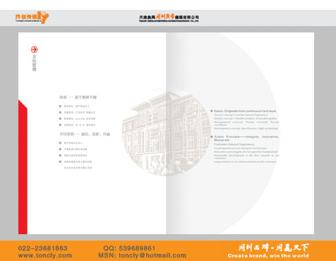 天津广告设计公司 天津VI、logo/标志设计 天津宣传册设计/样本设计/样册设计/画册设计/彩页设计 天津包装设计 天津网站设计 天津展示空间设计 天津广告摄影公司 天津海报设计 天津杂志 期刊 企业内刊设计 天津广告设计印刷公司 |